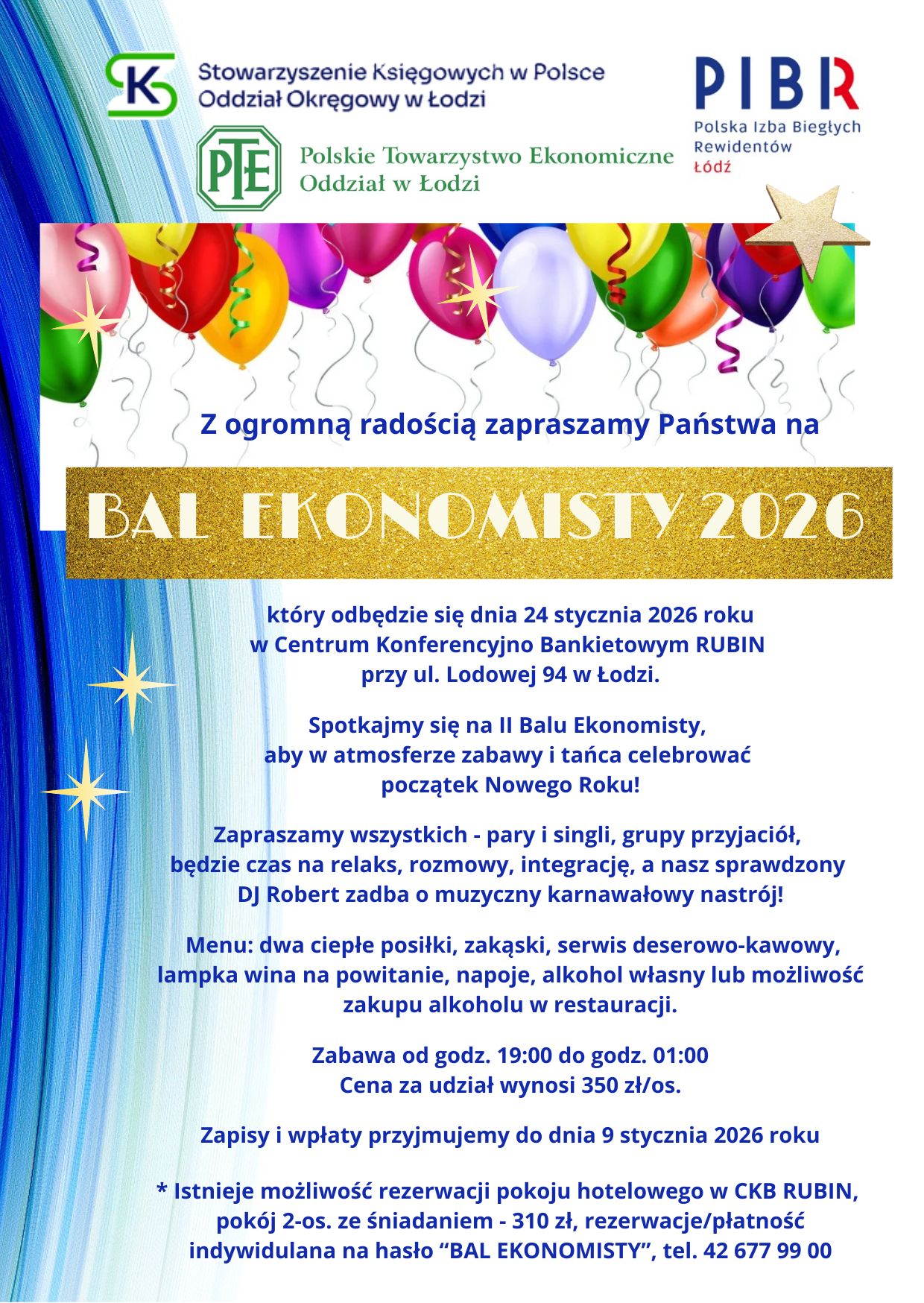 z ogromną radością zapraszamy Państwa na wyjątkowe wydarzenie, organizowane przez Łódzkie Środowisko Ekonomistów: RO PIBR Łódź, SKwP Oddział łódzki, Towarzystwo Ekonomiczne Oddział łódzki.